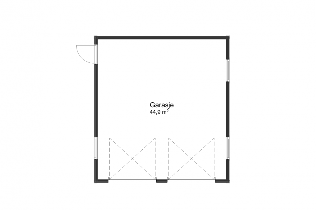 Med doble garasjeporter og valmet tak, er dette en garasje for deg som ønsker et bygg med herskapelig uttrykk ved boligen din. Med sine nesten 45m2 har denne garasjen både plass til to personbiler, og alt annet du måtte ønske å lagre i garasjen.
