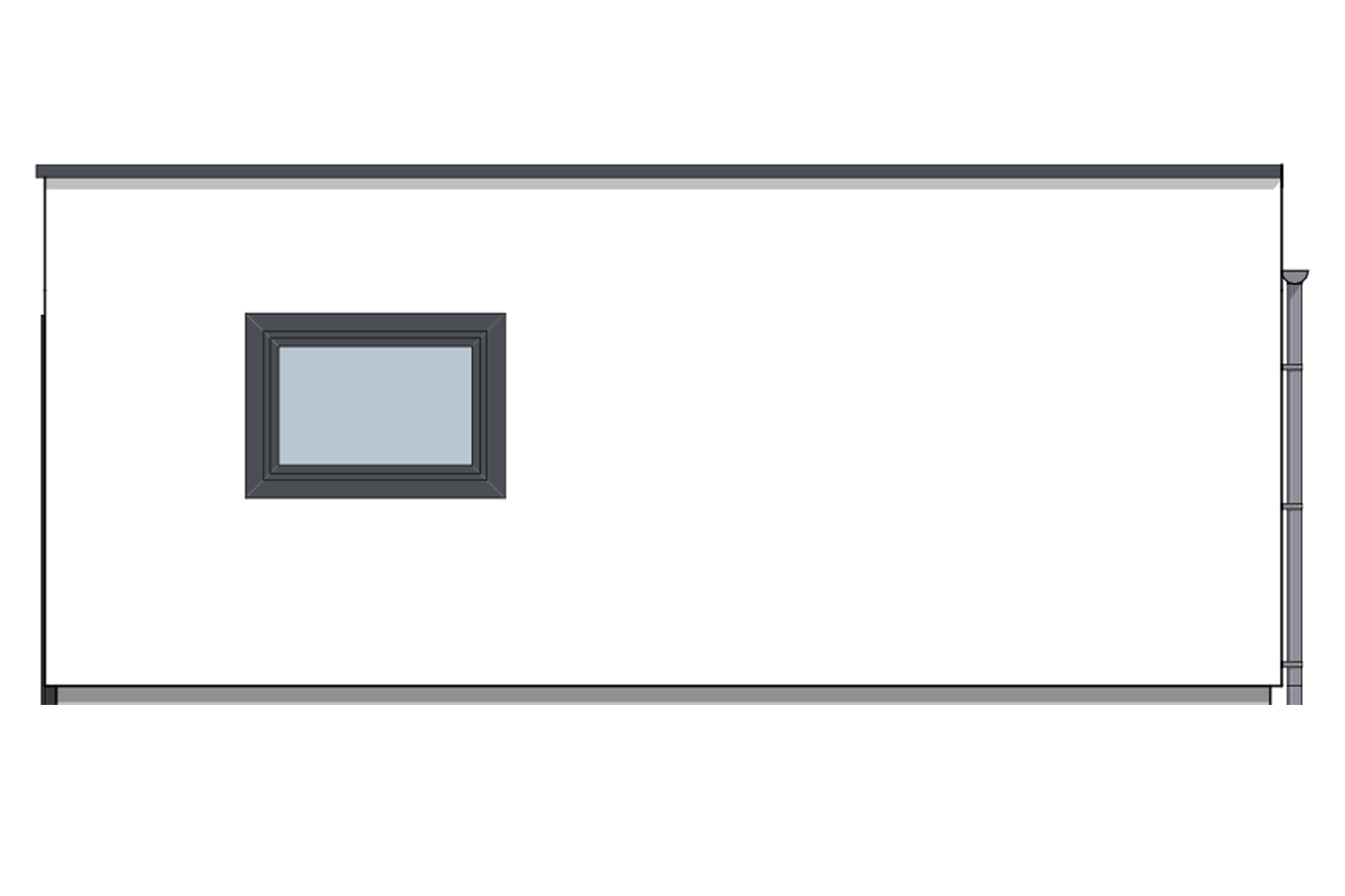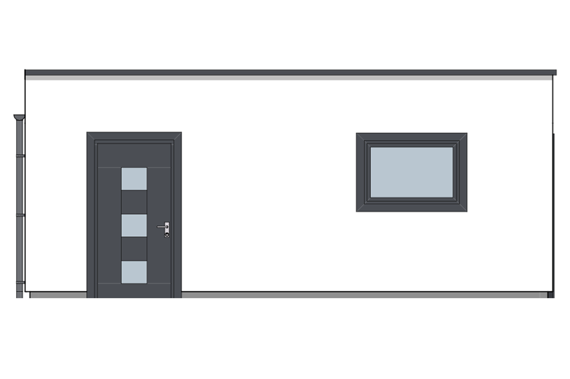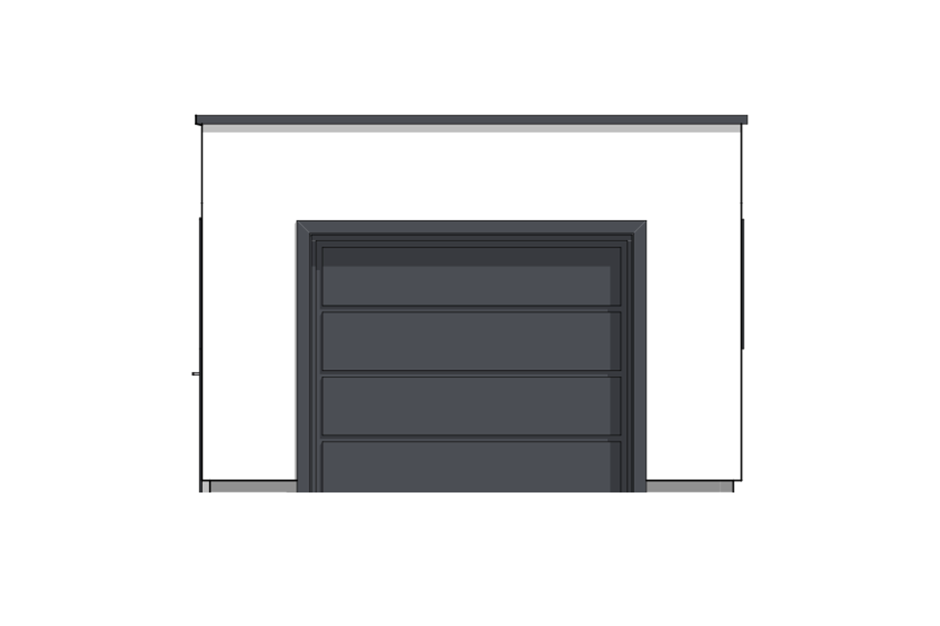 En dør er plassert i bakkant av bygget for å enkelt kunne gå inn eller ut av garasjen uten å måtte åpne porten. Vinduer på øst- og vestsiden av bygget slipper inn lys samtidig som de står fint i stil med resten av garasjens moderne detaljer.